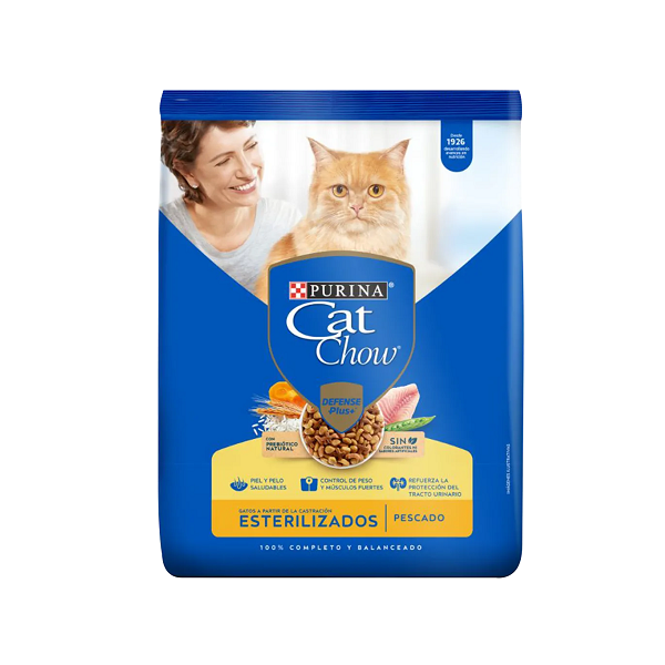 CAT CHOW GATOS ESTERILIZADOS 36% PROTEÍNA Formulado con niveles de proteína (36%) y grasa (9%) adaptados para ayudar en el control de peso y músculos fuertes, ideal para gatos esterilizados. Minerales contribuyen con el mantenimiento de huesos fuertes y las funciones vitales.