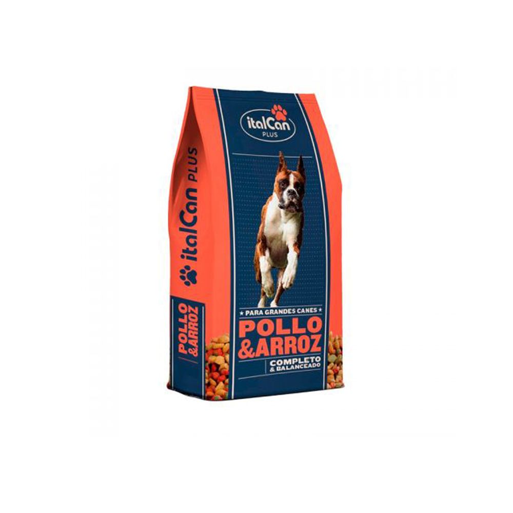 ItalCan Plus Pollo y Arroz es un concentrado para perros elaborado para suplir todos los requerimiento nutricionales de los grandes canes. Su fórmula fabricada a partir de pollo y arroz no solo proporcionará un rico sabor que tu perro disfrutará en cada comida sino además será ideal para ayudar a mantenerlo sano, vital y activo durante todas las etapas de su vida.