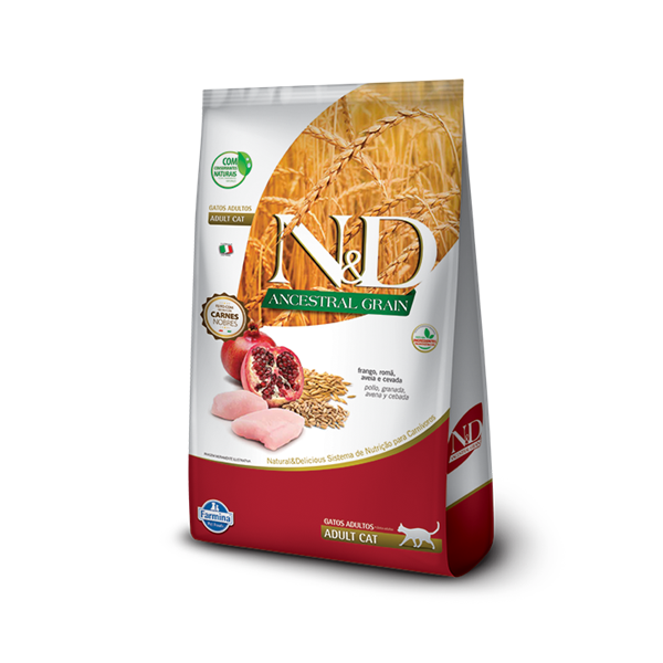 Para mayor información acerca de este alimento, visita https://www.farmina.com/co/eshop/alimento-para-su-gato/n&d-ancestral-grain-feline/421-pollo-y-granada-adultos.html