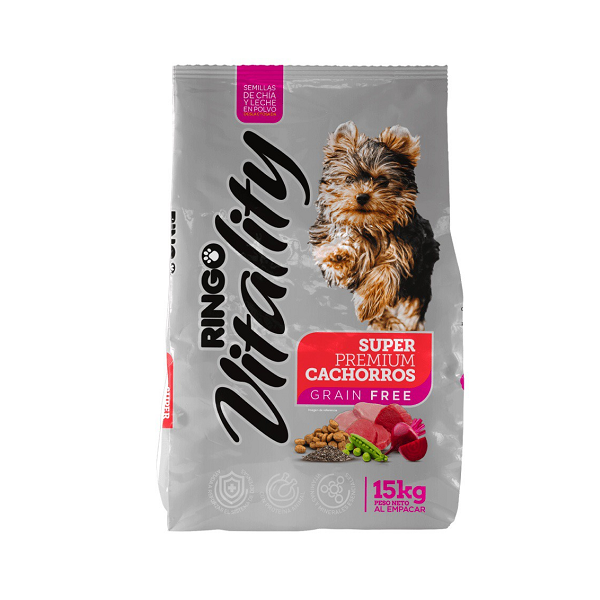Vivance Vitality Cachorros con su diferencial y avanzada formula libre de granos, contiene los ingredientes necesarios para una nutrición óptima para todos los caninos cachorros (desde la edad del destete hasta alcanzar la edad adulta). Sus ingredientes funcionales ofrecen beneficios adicionales para que los caninos se desarrollen siempre sanos, fuertes y activos. La variedad de las proteínas ofrecida en la dieta de Vivance Vitality Cachorros como el pollo, cordero, atún, huevo deshidratado y leche deslactosada, aportan un 28% de proteína, favoreciendo en los cachorros el desarrollo de huesos fuertes, un crecimiento adecuado, desarrollo del sistema inmune totalmente competente y excelente salud de la piel.