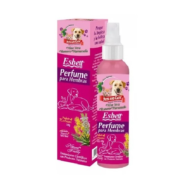 PERFUME ESBELT PARA HEMBRAS El agradable Perfume para Hembras permite que su mascota tenga un delicioso aroma. Con Aloé vera, Romero y Hamamelis.