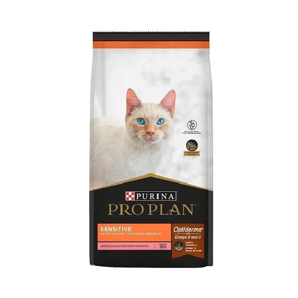 Purina Pro Plan Sensitive con Optiderma es un alimento para gatos adultos con sensibilidad alimentaria. Esta sensibilidad se puede ver reflejada como trastornos en la piel, el pelo o el sistema digestivo.