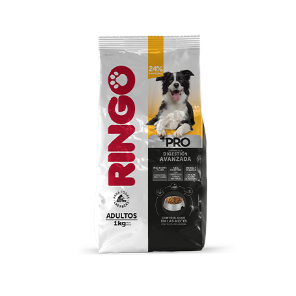 Ringo +Pro Es un alimento crocante con excelente textura y sabor a carne que garantiza un adecuado consumo, ofrece beneficios como: un apropiado balance de ácidos grasos omega 3 y 6, piel y pelaje sanos.