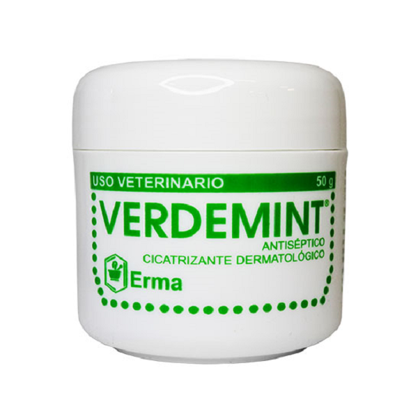VERDEMINT X 50 GR En Bovinos, porcinos, ovinos y caninos para el tratamiento de las infecciones externas post- traumatismos o post-operatorios, quemaduras, escoriaciones, eczemas, piodermas, grietas en los pezones producidos por Staphylococcus sp, Streptococcus sp, Corynebacterium sp, Proteus sp.